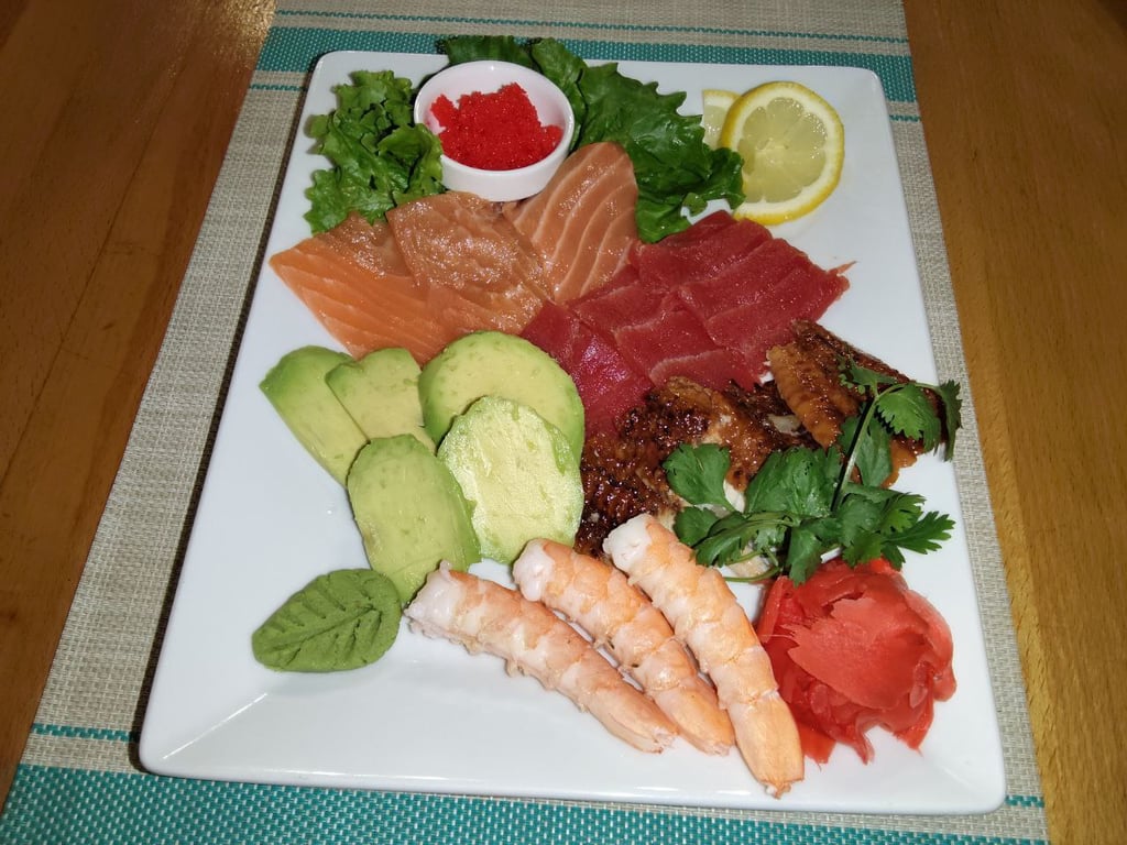 Нігірі "З Вугрем" 1шт.Нігірі "З Тунцем" 1шт.Нігірі "З Авокадо" 1шт.Нігірі "З Лососем" 1шт.Нігірі "З Креветкою" 1шт.Нігірі "З Лососем гриль" 1шт.Сашимі асорті 1шт.